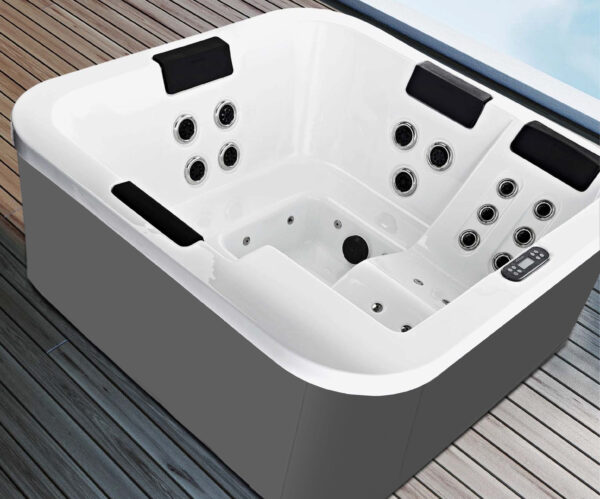 Minipiscina SPA Riscaldata Treesse da 4 posti Piscina Fuoriterra (3 sedute ed una chaise longue), 29 getti , con riscaldatore, ozonizzatore e cromoterapia. Inclusa copertura isotermica. A soli € 5.990,00* Iva, trasporto ed avviamento esclusi.